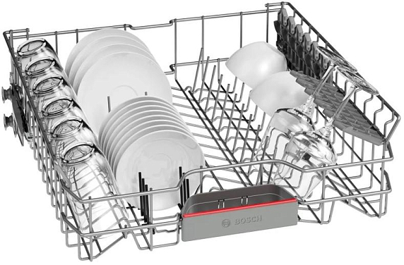 Посудомоечная машина Bosch SMS4HVI33E выполнена в стильном цвете «нержавеющая сталь». Электронная панель управления представлена в черном цвете в виде кнопок и небольшого дисплея. Половинная загрузка предназначена для небольшого количества посуды, что существенно экономит воду и электроэнергию. При помощи Home Connect можно контролировать работу устройства не находясь дома через мобильное приложение. Функция SpeedPerfect+ ускоряет мытье посуды на 50%, не ухудшая качество процесса. Эта функция работает с помощью увеличения давления воды и температуры, что позволяет устранить даже самые стойкие загрязнения.