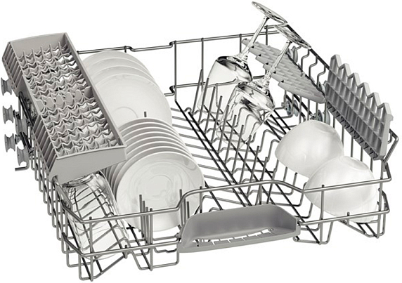 Встраиваемая полноразмерная посудомоечная машина Bosch SMV 51E30 вмещает 13 комплектов посуды. Стандартные режимы — интенсивный для сильнозагрязненной и экономичный для слабозагрязненной посуды — позволяют варьировать объем воды и моющего средства. Индикатор «Луч на полу» известит об окончании цикла.