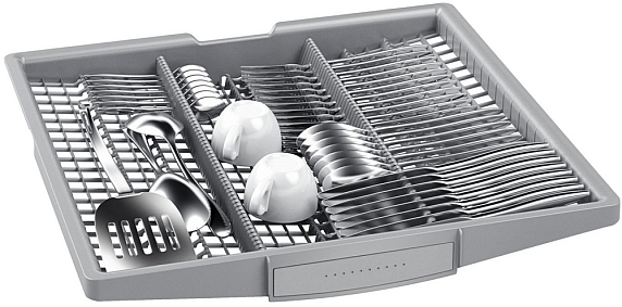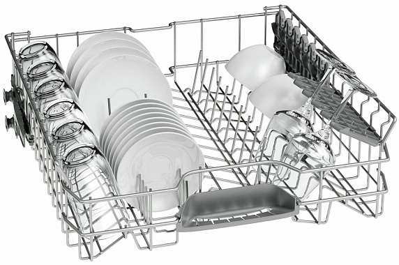 Bosch SMV25FX02R — полноразмерная встраиваемая посудомоечная машина с функцией ГигиенаПлюс, которая дезинфицирует посуду за счет ополаскивания водой 70° C в течение 10 минут. Благодаря замку ServoSchloss нет необходимости закрывать дверь машины «до упора» если угол открытия двери менее 10 градусов. Всеми режимами управляет мощный процессор с помощью системы AquaSensor.