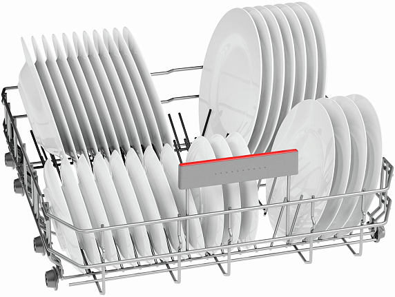 Переставляемый по высоте верхний короб системы Rackmatic и Rackmatic-3 создан для размещения габаритной посуды в нижней корзине посудомоечных машин. Чтобы правильно уложить высокие кастрюли можно поднять верхний короб даже при его полной загрузке на 5 см. Обычно этой высоты вполне хватает для нестандартной посуды. При этом качество мытья останется таким же хорошим.