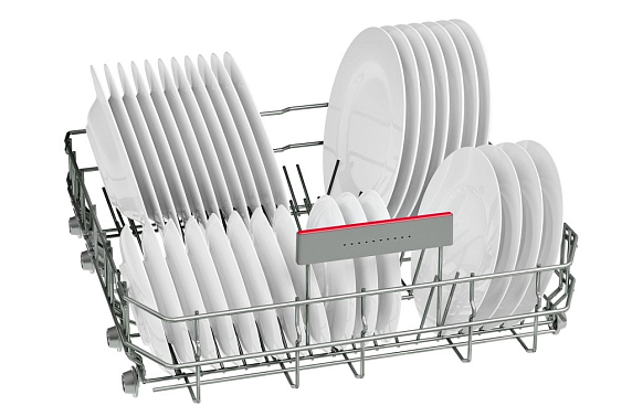 Переставляемый по высоте верхний короб системы Rackmatic и Rackmatic-3 создан для размещения габаритной посуды в нижней корзине посудомоечных машин. Чтобы правильно уложить высокие кастрюли можно поднять верхний короб даже при его полной загрузке на 5 см. Обычно этой высоты вполне хватает для нестандартной посуды. При этом качество мытья останется таким же хорошим.