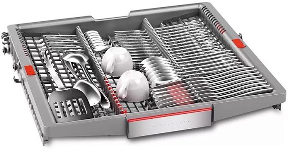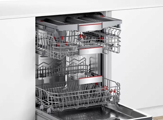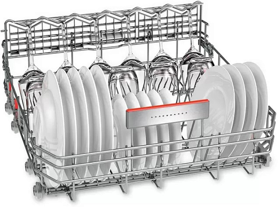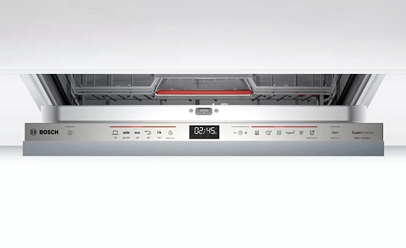 Полновстраиваемая посудомоечная машина Bosch SMV66TX01R рассчитана на большую семью и вмещает 14 комплектов посуды. Функция HygienePlus в конце мойки ополаскивает посуду водой 70 градусов. Это гарантирует уничтожение до 99% бактерий — обеззараживайте банки для консервирования, бутылочки для детского питания и другие емкости. Благодаря тому, что сушка выполняется за счет теплообменника, хрупкая стеклянная посуда будет защищена от температурного шока и не испортится. Проекция дисплея TimeLight отображает световым лучом ход выполнения программы и выбранные настройки — просто посмотрите на пол! За счет встроенного замка ServoSchloss дверь закроется сама, если угол открытия меньше 10 градусов.