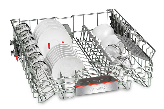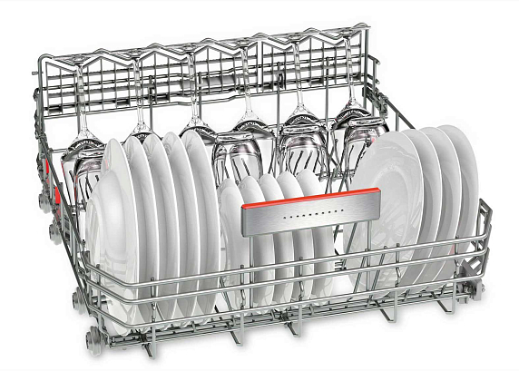 Bosch SMV88TD06R — это встраиваемая полноразмерная посудомоечная машина вместимостью 14 комплектов посуды. Имеет восемь программ и специальные функции HygienePlus, VarioSpeed и Shine & Dry. Предусмотрена индикация наличия ополаскивателя и соли, а также времени мытья и окончания программы Проточный водонагреватель обеспечивает безопасное мытье пластиковой и хрупкой посуды. Верхний короб — переставляемый по высоте, с системой RackMatic-3. В нижнем коробе есть восемь направляющих FLIPTINES для глубокой посуды, дополнительный фиксатор для бокалов и две полки для кухонной утвари.