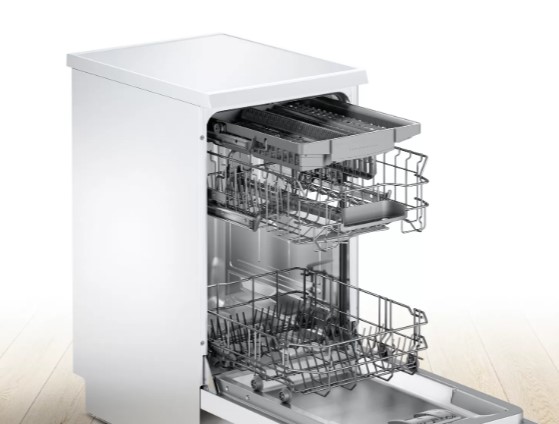 Посудомоечная машина Bosch SPS 25FW03 R шириной всего 45 см подойдет для небольших помещений. Устройство бережно относится к хрупкой посуде за счет технологии HygieneDry, созданной на основе теплообменника. Инверторный двигатель EcoSilence Drive работает тихо, что позволит вам спокойно отдыхать в вечернее и ночное время суток. Если вам нужно ускорить мытье посуды, включите функцию VarioSpeed. С ее помощью время выполнения выбранной программы сокращается в 2 раза.