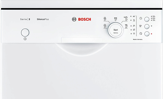 Посудомоечная машина Bosch SPS25FW14R — узкая отдельностоящая модель с пятью программами, специальным режимом VarioSpeed и дополнительной сушкой. Теплообменник исключает возможность температурного шока стеклянной и хрупкой посуды. Последнее ополаскивание производится водой комнатной температуры, не используется сушка горячими потоками воздуха.