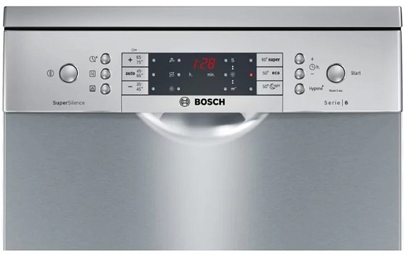 Посудомоечная машина Bosch SPS69T88 — отдельностоящая модель с 6 программами мытья и функцией HygienePlus. Если вы активируете режим «ГигиенаПлюс», то к основному циклу мойки добавляется дополнительное ополаскивание горячей водой, что позволяет продезинфицировать посуду и полностью избавиться от аллергенов.