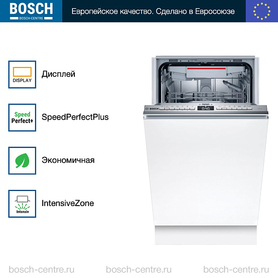 Посудомоечная машина BOSCH SPV4XMX28E — это узкая встраиваемая модель с современным функционалом.