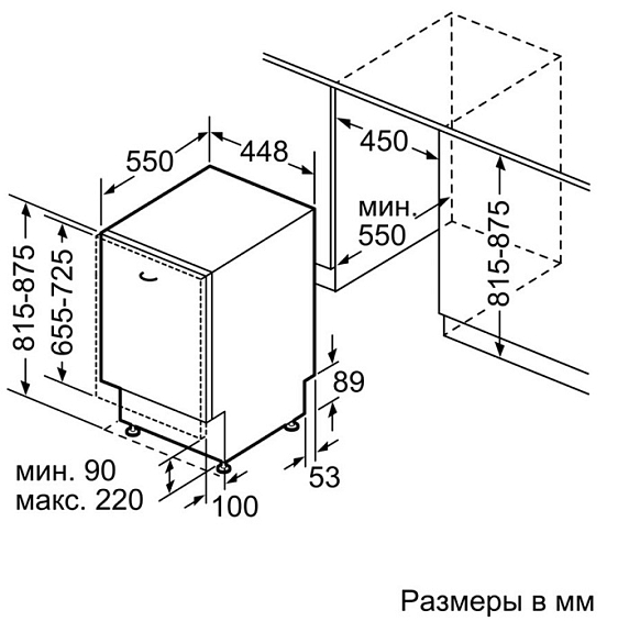 Можно установить посудомойку ровно на любой поверхности, отрегулировав ножки по высоте.