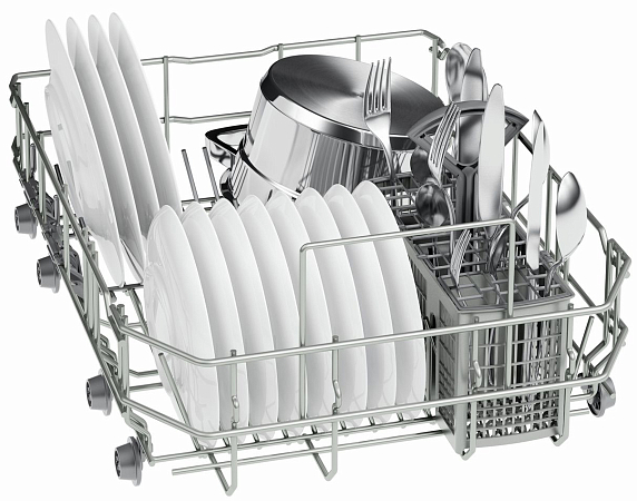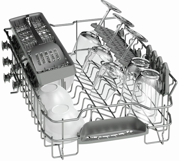 Встраиваемая посудомоечная машина Bosch SPV25DX20R оснащена пятью программами, в том числе интенсивной при 70°С. Сильнозагрязненную посуду можно легко отмыть благодаря функции IntensivZone: кастрюли, сковороды и противни нужно поместить в нижний короб, где мытье происходит более горячей водой и под большим давлением. Прибор обеспечивает самый бережный уход за хрупкой стеклянной посудой благодаря теплообменнику: последнее ополаскивание производится водой комнатной температуры, не используется сушка горячим воздухом.