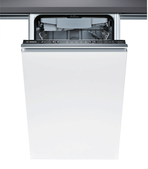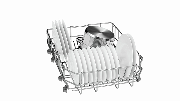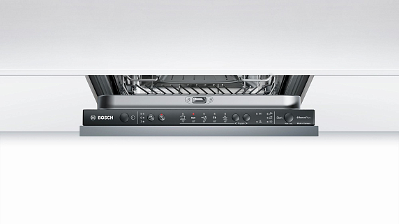 Посудомоечная машина Bosch SPV25FX70R имеет закрытую панель управления, что обезопасит эксплуатацию. В верхнем коробе находится полочка для чашек. Инверторный двигатель EcoSilence Drive обеспечивает тихую работу техники.