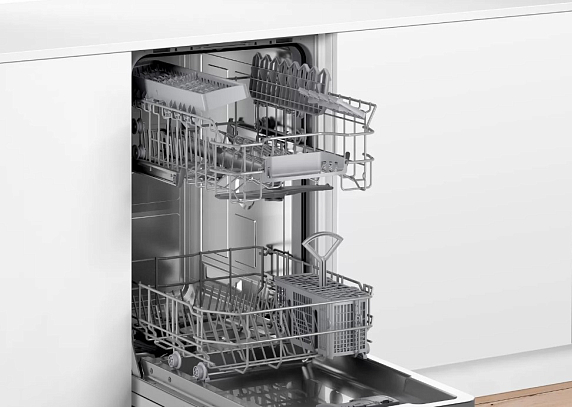 Посудомоечная машина Bosch SPV2HKX4DR шириной всего 45 см подойдет для небольших кухонь. Технология мытья Duo Power работает по всему пространству камеры, очищая посуду в самых труднодоступных местах. Двигатель EcoSilence Drive работает тихо, что позволяет вам спокойно отдыхать в вечернее время суток. С возможностью удаленного подключения Home Connect управляйте посудомоечной машиной из любой точки мира!