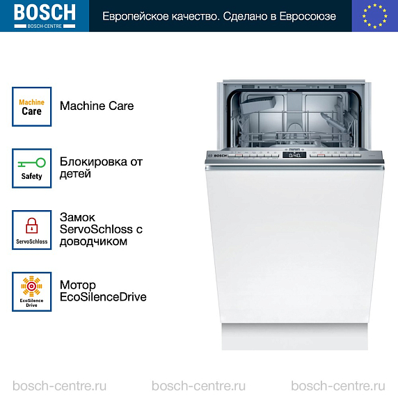 Посудомоечная машина Bosch SPV4HKX45E — это узкая встраиваемая модель с инверторным двигателем.