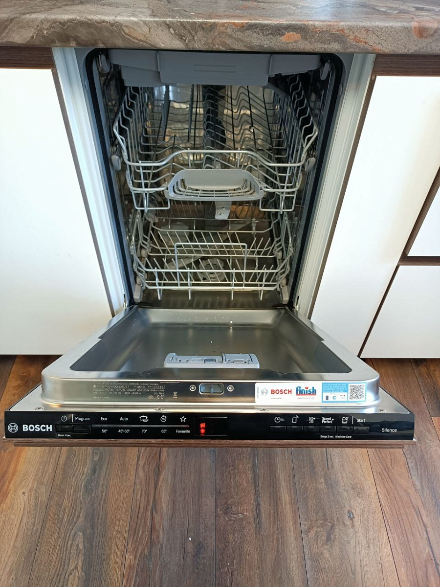 С ремонтом и установкой новой кухни мы приобрели эту модель посудомоечной машины. Она отлично вписалась в кухню, полностью скрытая панель выглядит эстетично. Главный плюс для меня тишина. После работы в цеху мне всегда хочется тишины, инверторный мотор работает настолько тихо, что её вообще не слышно. Вместительность машины тоже радует. Помещается вся посуда после ужина нашей большой семьи. Жена стала меньше времени проводить на кухне.