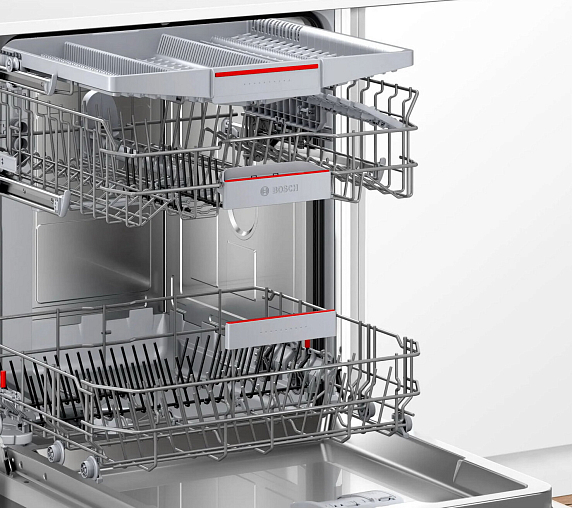 Встраиваемая посудомоечная машина Bosch SMV46KX55E оснащена системой ActiveWater, которая обеспечивает эффективное использование воды, и технологией защиты стекла, которая предотвращает повреждение деликатной стеклянной посуды. Электроника регенерации автоматически устанавливает жесткость воды, обеспечивая оптимальные условия для мытья посуды.