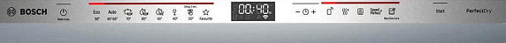 Дисплей в посудомоечной машине расположен вверху фронтальной части и помогает с настройками, а также в коммуникации с устройством. Отображение текста представлено двумя строками с шестью символами в каждой.