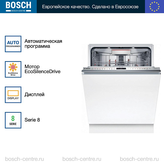 ** Все информационные материалы, представленные на Сайте, носят справочный характер и не могут в полной мере передавать достоверную информацию о свойствах, комплектации и характеристиках товара, включая цвета, размеры и формы. Фирма-производитель оставляет за собой право на внесение изменений в конструкцию, дизайн и комплектацию товара без предварительного уведомления. Перед оформлением Заказа Покупатель должен обратиться к Продавцу для уточнения свойств и характеристик Товара. Подробная информация о товаре указывается в инструкции и на упаковке товара. Используемое название в России: Бош SMV8YCX02E
