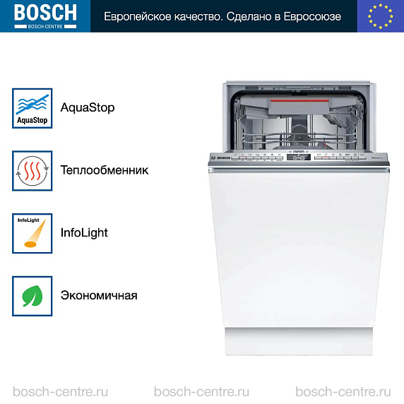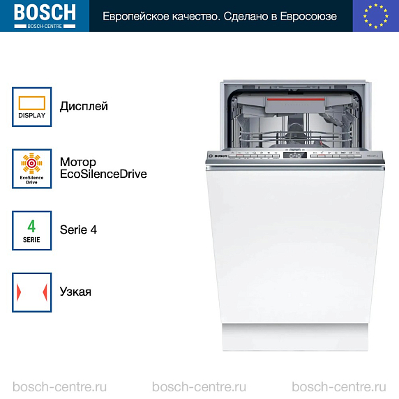 Встраиваемая посудомоечная машина Bosch SPV4HMX49E — это элегантное и функциональное решение для вашей кухни. Она отличается стильным дизайном и узким профилем, который позволяет экономить пространство. Панель управления выполнена из нержавеющей стали, что придает ей современный и стильный вид. Дисплей на панели управления обеспечивает удобство использования, позволяя легко выбирать программы и отслеживать оставшееся время. Машина оснащена инверторным двигателем EcoSilence Drive, который обеспечивает тихую и эффективную работу. Она способна помыть до 10 комплектов посуды за один цикл, что делает ее идеальным выбором для больших семей или тех, кто часто устраивает вечеринки. Машина имеет шесть стандартных программ и четыре температурных режима, что позволяет выбрать наиболее подходящий режим для каждого типа посуды и степени загрязнения.