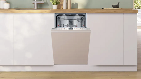 Встраиваемая посудомоечная машина Bosch SPV8ZMX06Q обладает сдержанными линиями и панелью из нержавеющей стали, которая гармонично встраивается в мебельный гарнитур и придаёт кухонному пространству аккуратный, современный вид. Узкая конструкция рассчитана на ограниченное пространство, при этом сохраняет функциональную вместимость на десять стандартных комплектов, что делает модель отличным решением для малых и средних семей. Внутренняя камера выполнена из сочетания нержавеющей стали и прочного пластика, обеспечивая долговечность при интенсивной эксплуатации; производитель подтверждает защиту от сквозной коррозии сроком в десять лет, а стандартная гарантия составляется двенадцать месяцев.
