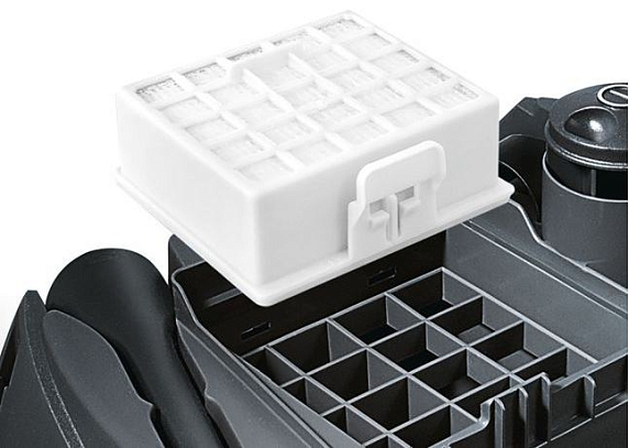 Система гигиенической фильтрации предназначена для очистки воздуха, выходящего из пылесоса во время уборки. Она состоит из нескольких фильтров (в некоторых моделях до 8 штук), каждый из которых выполняет свою задачу. Идет поэтапная очистка от грубых, средних и мелких частиц пыли. В помещении после такой эффективной очистки могут находится даже аллергики.