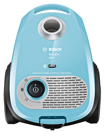 Пылесос Bosch BGL25A100 выполнен в светло-голубом цвете и оснащен системой BigCapacity, которая позволяет использовать мешки большого объема, несмотря на компактные размеры устройства.