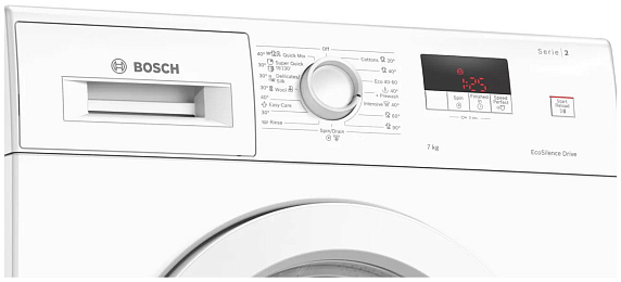 Стиральная машина Bosch WAJ20061BY оснащена дизайном AntiVibration он создает стиль и блокирует вибрацию при работе. Двигатель EcoSilence Drive не будет беспокоить вас, ведь он очень тихий, а также у него длительный строк службы. Управление осуществляется с помощью поворотного регулятора, все программы у вас на виду, на дисплее отображается ход программы.