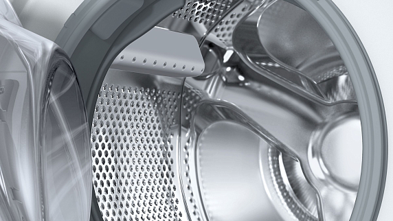 Барабан — это емкость в которую закладывают белье. По его объему определяют возможность загрузки. Материалом служит высококачественная нержавеющая сталь. Внутри барабана есть ребра со специальной конфигурацией, которые при вращении этого элемента переворачивают и бережно отстирывают вещи. Барабаны Bosch прочны, долговечны и бесшумны.