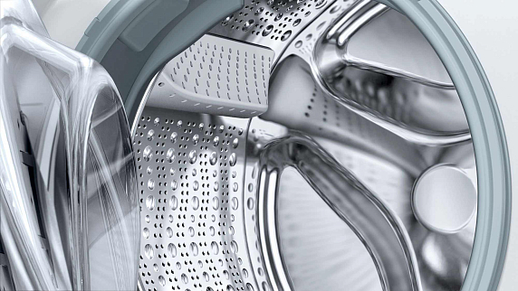 Барабан — это емкость в которую закладывают белье. По его объему определяют возможность загрузки. Материалом служит высококачественная нержавеющая сталь. Внутри барабана есть ребра со специальной конфигурацией, которые при вращении этого элемента переворачивают и бережно отстирывают вещи. Барабаны Bosch прочны, долговечны и бесшумны.