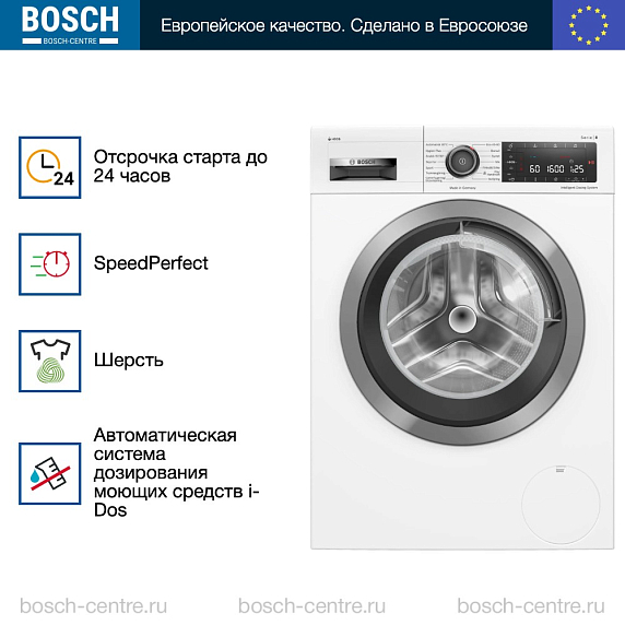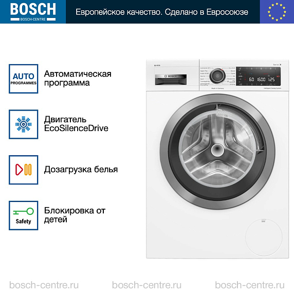 ** Все информационные материалы, представленные на Сайте, носят справочный характер и не могут в полной мере передавать достоверную информацию о свойствах, комплектации и характеристиках товара, включая цвета, размеры и формы. Фирма-производитель оставляет за собой право на внесение изменений в конструкцию, дизайн и комплектацию товара без предварительного уведомления. Перед оформлением Заказа Покупатель должен обратиться к Продавцу для уточнения свойств и характеристик Товара. Подробная информация о товаре указывается в инструкции и на упаковке товара. Используемое название в России: Бош WAX02KLOSN