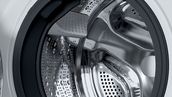 Барабан — это емкость в которую закладывают белье. По его объему определяют возможность загрузки. Материалом служит высококачественная нержавеющая сталь. Внутри барабана есть ребра со специальной конфигурацией, которые при вращении этого элемента переворачивают и бережно отстирывают вещи. Барабаны Bosch прочны, долговечны и бесшумны.
