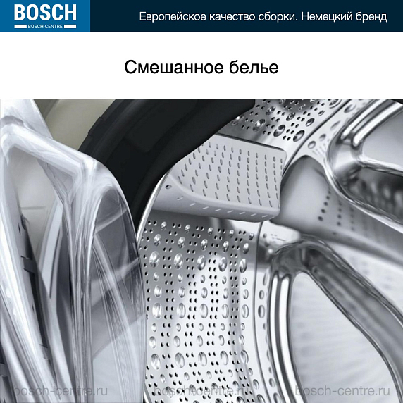 Барабан — это емкость в которую закладывают белье. По его объему определяют возможность загрузки. Материалом служит высококачественная нержавеющая сталь. Внутри барабана есть ребра со специальной конфигурацией, которые при вращении этого элемента переворачивают и бережно отстирывают вещи. Барабаны Bosch прочны, долговечны и бесшумны.
