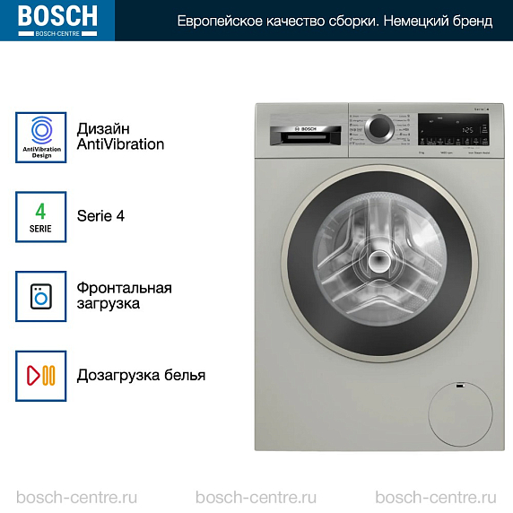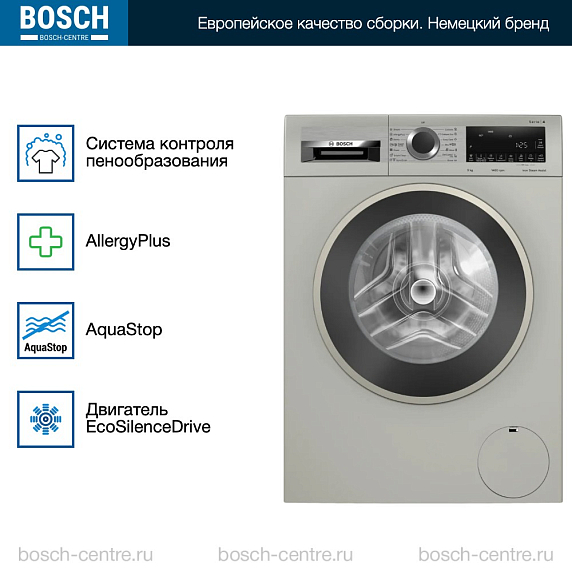 Стиральная машина Bosch WGA2440XME – это сочетание современного дизайна и передовых технологий, созданных для обеспечения максимального комфорта и качества стирки. Это отдельностоящая модель с фронтальной загрузкой, которая способна вместить до 9 кг белья за один цикл. Стиральная машина выполнена в классическом серебристом цвете, что позволяет ей идеально вписаться в любой интерьер. Управление стиральной машиной осуществляется с помощью электронного панели, которая включает в себя кнопки и поворотный переключатель. На многофункциональном LED-дисплее отображается информация о ходе программы и времени до окончания стирки. А акустический сигнал сообщит вам о завершении программы. Также в модели предусмотрена функция отложенного старта, что позволяет запланировать время начала стирки на 24 часа вперед.