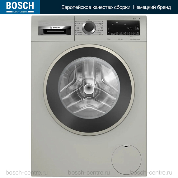 Устройство имеет привлекательный современный дизайн с белым корпусом и удобным многофункциональным LED-дисплеем. Эргономичные кнопки управления и интуитивно понятные индикаторы делают процесс стирки максимально простым и комфортным. Модель относится к серии Serie 4 и представляет собой отдельностоящую машину с фронтальной загрузкой.