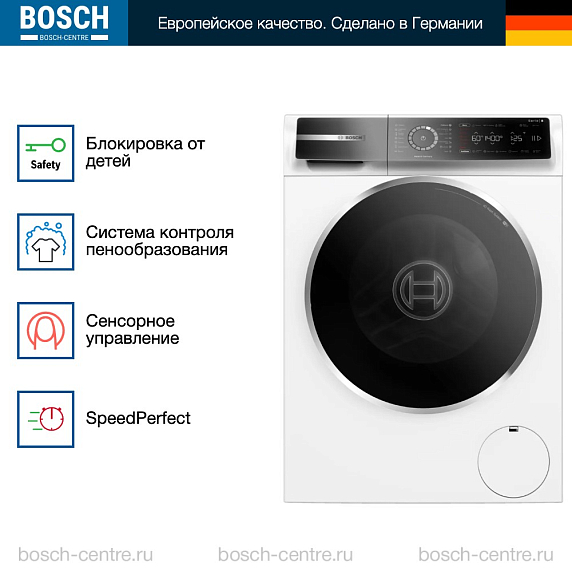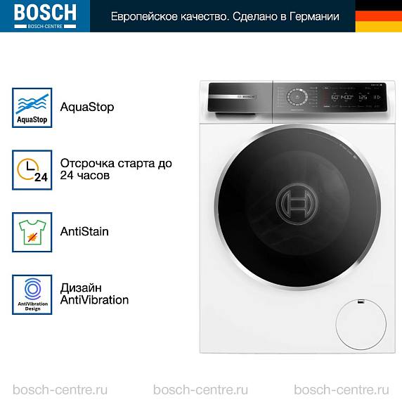 Стабильная и надежная стиральная машина Bosch WGB24400ME превратит рутину стирки в простой и удобный процесс. Произведенная в Германии, эта модель отличается высоким качеством исполнения и продуманным дизайном. Благодаря своим компактным размерам и классическому белому цвету, она легко впишется в любой интерьер, подчеркивая его стиль и элегантность. Одним из ключевых преимуществ Bosch WGB24400ME является ее вместительность. Максимальная загрузка при стирке составляет 9 кг, что делает эту модель идеальным выбором для больших семей.
