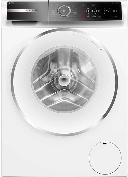 Модель Bosch представлена в классическом белом цвете, обеспечивая гармоничное вливание в любой интерьер. Управление осуществляется электронно с помощью кнопок, поворотного переключателя и сенсорных элементов, что делает использование техники максимально комфортным и понятным. Многофункциональный LED дисплей позволяет отслеживать ход программы, время до окончания стирки и максимальную загрузку для выбранной программы. Также предусмотрен акустический сигнал окончания программы, а функция отложенного старта с максимальным временем отсрочки до 24 часов дает возможность гибко планировать свое время. Системы ActiveWater и WaterPerfect обеспечивают экономное использование воды, а функция Home Connect позволяет управлять машиной дистанционно через приложение на смартфоне.