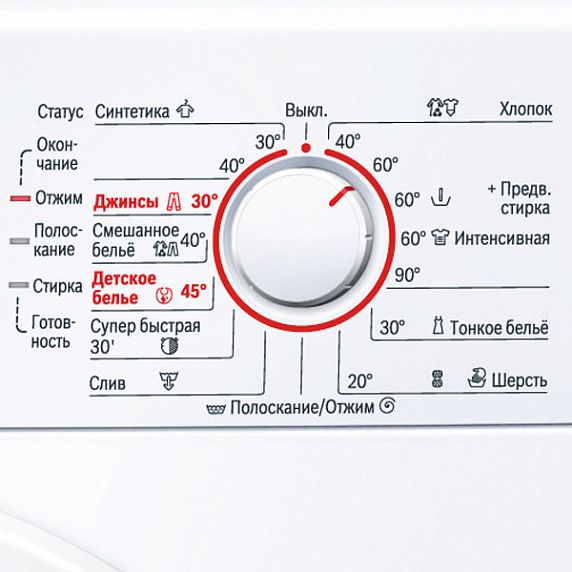 Класс отжима показывает насколько сухим выйдет белье после стирки. Влажность зависит от скорости вращения барабана при отжиме. В данное время максимально возможные обороты составляют 1600 об/мин и после него можно сразу гладить белье. Такой отжим обозначен латинской литерой А. Отжим на скорости 1400 об/мин имеет класс B, класс C — число оборотов до 1200 в минуту, D — до 1000.