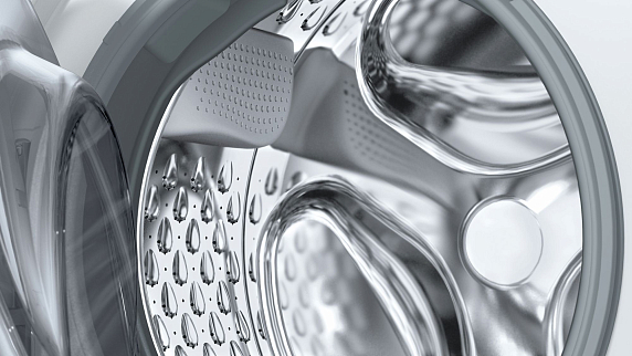 Барабан — это емкость в которую закладывают белье. По его объему определяют возможность загрузки. Материалом служит высококачественная нержавеющая сталь. Внутри барабана есть ребра со специальной конфигурацией, которые при вращении этого элемента переворачивают и бережно отстирывают вещи. Барабаны Bosch прочны, долговечны и бесшумны.