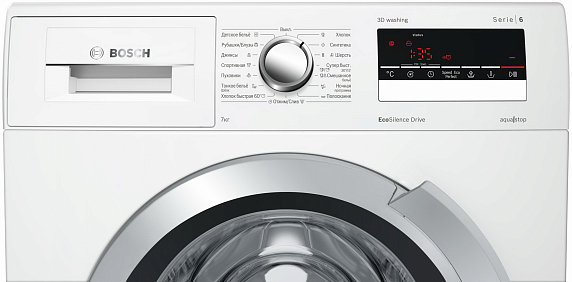 Барабан — это емкость в которую закладывают белье. По его объему определяют возможность загрузки. Материалом служит высококачественная нержавеющая сталь. Внутри барабана есть ребра со специальной конфигурацией, которые при вращении этого элемента переворачивают и бережно отстирывают вещи. Барабаны Bosch прочны, долговечны и бесшумны.