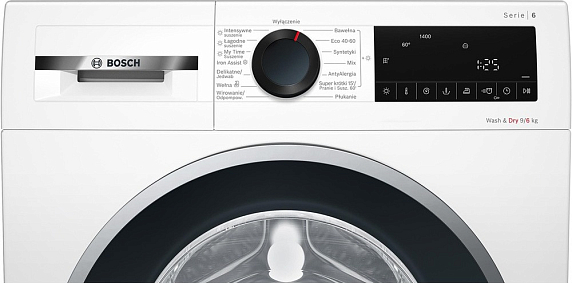 Стирально-сушильная машина Bosch WNA14404PL — отличный вариант для тех, у кого нет места поставить одновременно и стиральной, и сушильной техники. Эта модель прекрасно справится с функциями обеих. Вы можете включить сушку спустя время после стирки, полоскания и отжима, а можно запрограммировать оборудование так, чтобы процессы следовали друг за другом. Но при этом следует помнить, что максимальная загрузка при разных операциях отличается. В барабан прибора можно поместить до 9 кг сухого белья, и до 6 кг — влажного. Так что часть белья можно развесить или положить их во вторую очередь.