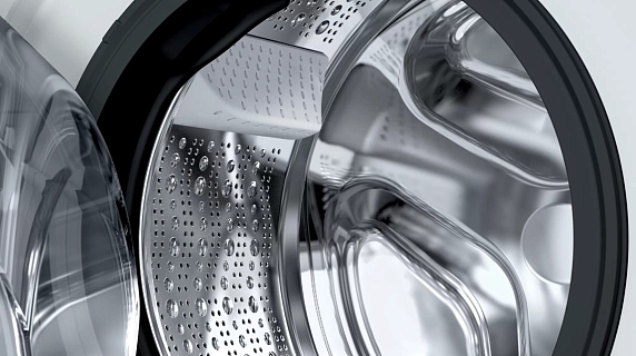 Барабан — это емкость в которую закладывают белье. По его объему определяют возможность загрузки. Материалом служит высококачественная нержавеющая сталь. Внутри барабана есть ребра со специальной конфигурацией, которые при вращении этого элемента переворачивают и бережно отстирывают вещи. Барабаны Bosch прочны, долговечны и бесшумны.