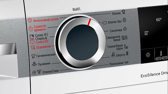 Машина оснащена системой ActiveWater / WaterPerfect, которая оптимизирует расход воды в зависимости от типа и количества белья. Доступно 14 программ стирки, включая программы для хлопка, синтетики, смешанного белья, деликатного белья, шерсти, пуховиков и антиаллергенную программу. При этом есть возможность выбора типа сушки, включая интенсивную и сушку по времени.
