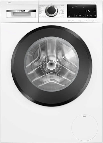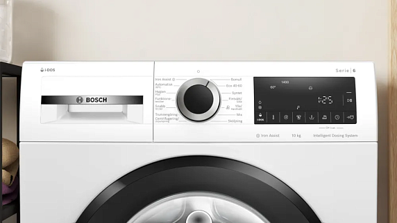 Стиральная машина Bosch WGG254FESN выделяется сдержанным, современным обликом и продуманной эргономикой, которые впишутся в интерьер любой прачечной или бытового уголка. Белый корпус аккуратно сочетается с многофункциональным LED-дисплеем на передней панели, где расположены поворотный переключатель и сенсорные элементы управления для интуитивного выбора параметров. Панель отличается лаконичностью: крупная ручка для быстрого старта режимов соседствует с удобными сенсорными клавишами, благодаря чему настройка занимает считанные секунды. Дверца с петлями слева обеспечивает удобный доступ к объёмному барабану VarioDrum из нержавеющей стали, создавая комфорт при загрузке и разгрузке белья.