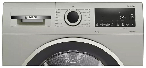 Прибор выполнен в серебристом цвете и оснащен электронным управлением, что обеспечивает удобство и простоту использования. Управлять функциями можно с помощью поворотного переключателя и сенсорных кнопок Touch control. Среди специальных функций стоит отметить возможность меньшего нагрева, что позволяет бережно обращаться с одеждой, и отсрочку старта до 24 часов. Также имеется функция «легко гладить», облегчающая последующий уход за бельем. На LED-дисплее отображается информация о процессе. Индикаторы сигнализируют о заполнении ворсового фильтра и контейнера для конденсата. При окончании работы программы прозвучит звуковой сигнал.