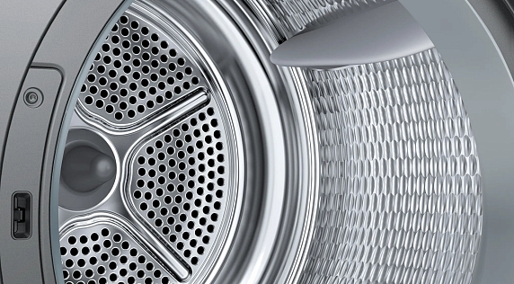 Материал барабана - нержавеющая сталь, что гарантирует долговечность и надежность машины. Двигатель с инверторным управлением обеспечивает тихую и эффективную работу. Контейнер для конденсата и ворсовый фильтр обеспечивают легкость обслуживания и чистоту процесса сушки. Модель также оснащена защитой от детей и дизайном боковой панели AntiVibration, что делает ее безопасной и стабильной в использовании. Класс энергопотребления А+++ гарантирует экономичность использования машины.