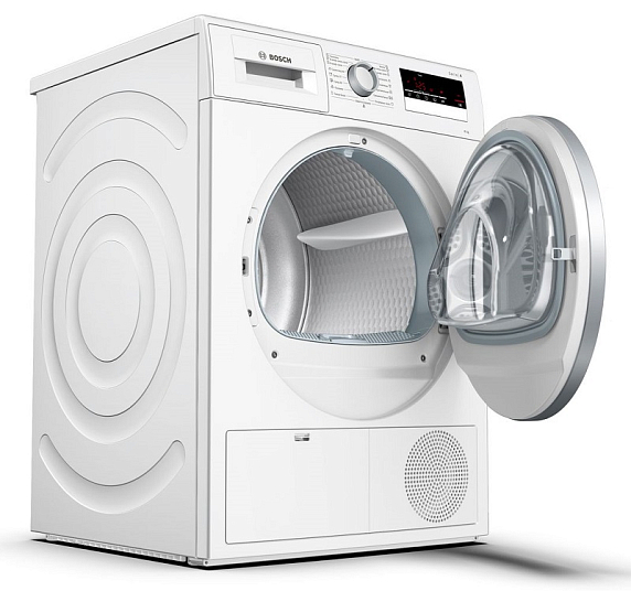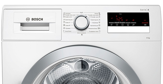 Сушильная машина Bosch WTM83261OE имеет приличную загрузку до 8 кг. Необходимо учитывать, что для каждого типа ткани или вещей, а также программы максимальная загрузка может меняться. Это нужно принимать во внимание, чтобы результат оказался качественным, а само содержимое бака не пострадало.