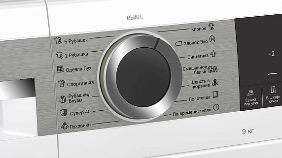 Сушильная машина Bosch WQG242A0OE вмещает до 9 кг мокрого белья. Люк открывается вправо, поэтому пользователю будет достаточно удобно её установить в ряд со стиральным аппаратом. Для сушки в аппарате предусмотрено 15 программ.