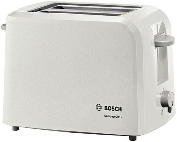 Тостер Bosch TAT 3A011 — компактная модель белого цвета с электронным управлением.