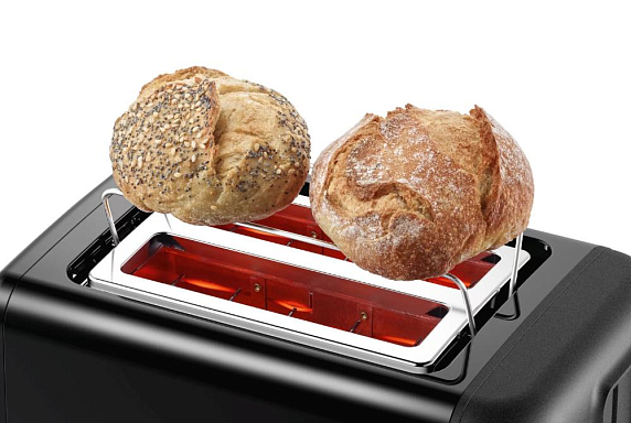 Тостер Bosch TAT 3P423 выталкивает хлеб так далеко, что с легкостью можно достать самые маленькие кусочки и не обжечься. Легко выдвинуть лоток и очистить тостер от крошек. Хлеб автоматически центрируется и обеспечивает равномерное поджаривание.