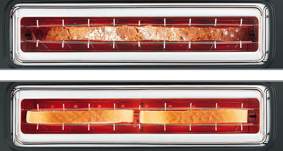 Модели тостеров с удлиненным размером слота для приготовления больших кусков тоста или 2-х стандартных тостов в одном слоте.