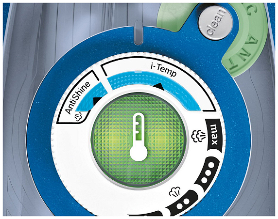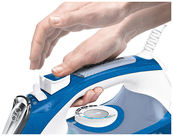 Прибор оснащен автопрограммой для глажения деликатных и темных тканей antiShine. Прибор оборудован системой SensorSecure: включается от прикосновения к ручке утюга и выключается, когда вы убираете руку.