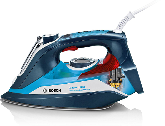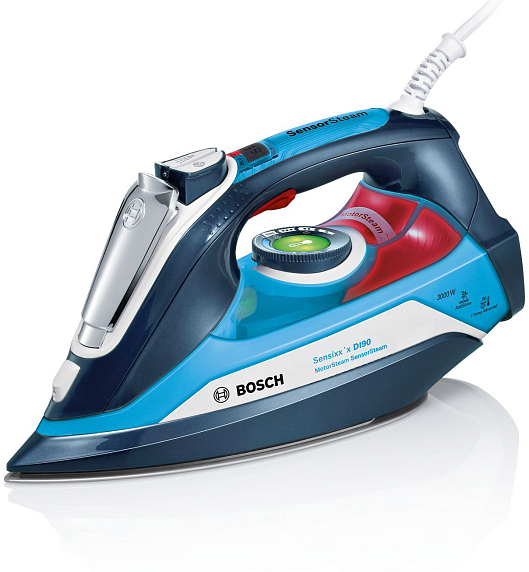 Утюг Bosch TDI 903031A — это мощная компактная паровая станция. Помпа MotorSteam обеспечивает глубокое проникновение пара в несколько слоев ткани. Благодаря Sensor steam прибор включается при касании ручки. Автопрограмма i-Temp подбирает оптимальное сочетание температуры и пара для глажения любого белья, вам не потребуется сортировка по типу ткани.